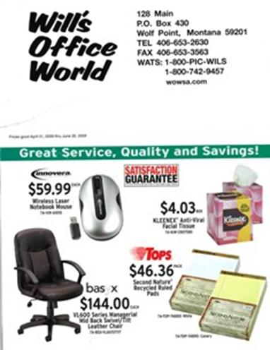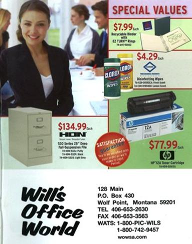 Will’s Office World P.O. Box 430 128 Main St. Wolf Point, MT 59201-0430 |